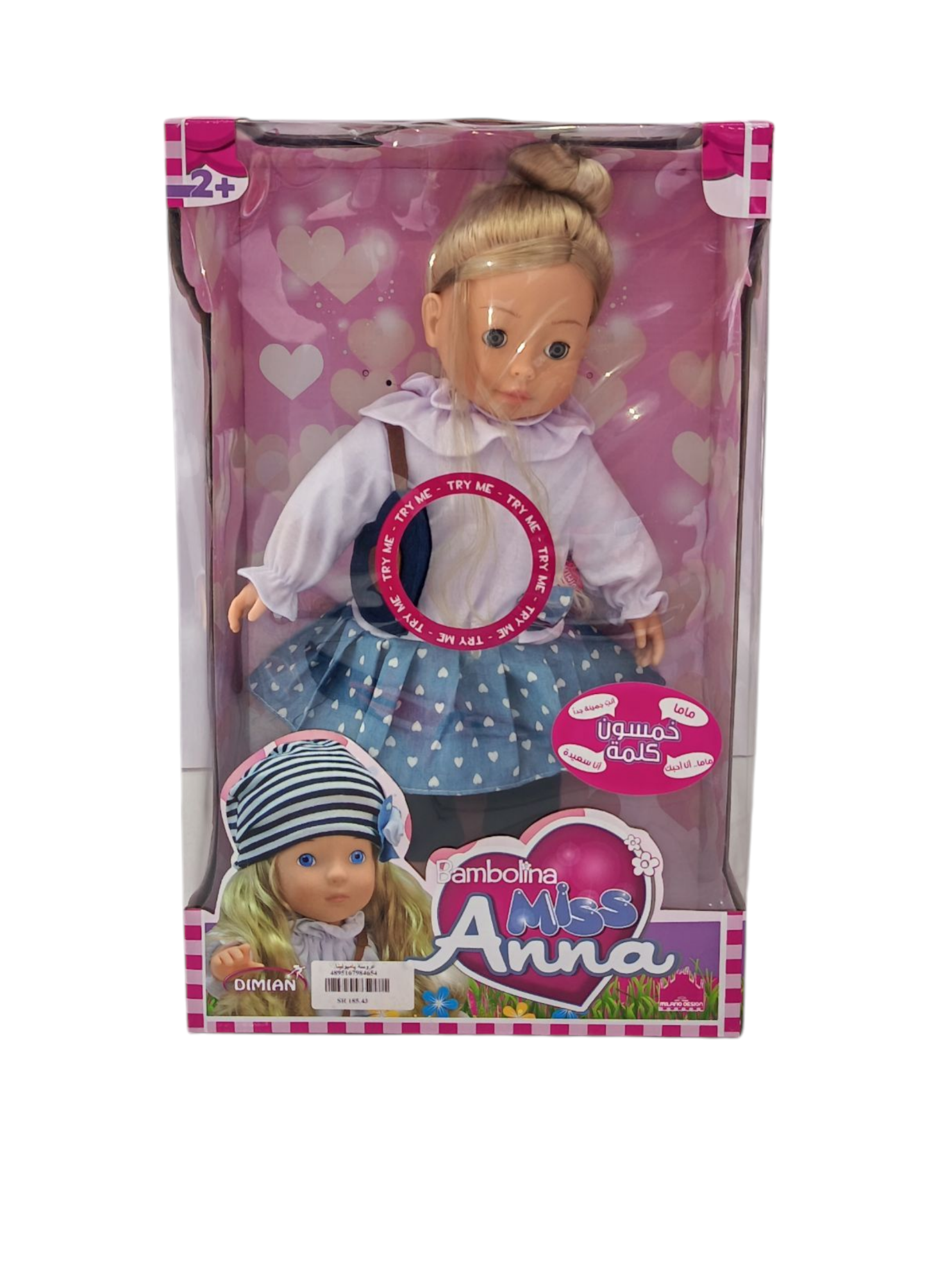 الدمية المعروضة هي "بامبولينا ميس آنا"، وهي دمية تفاعلية مصممة للأطفال بعمر سنتين فما فوق، وتتميز بالقدرة على نطق 50 كلمة