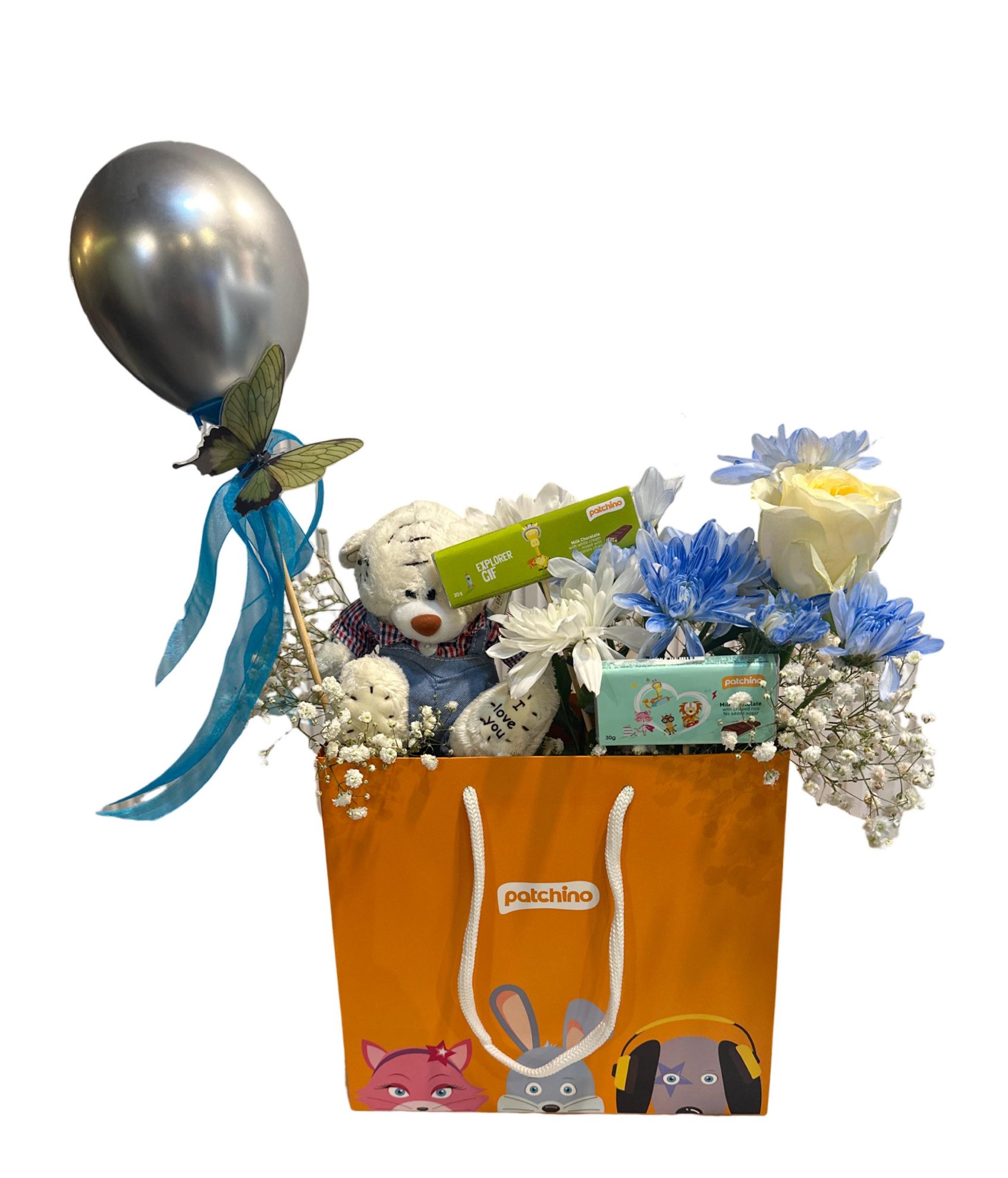 باقه ورد جوري وكريز مع شكلاته باتشي لطفل ولد