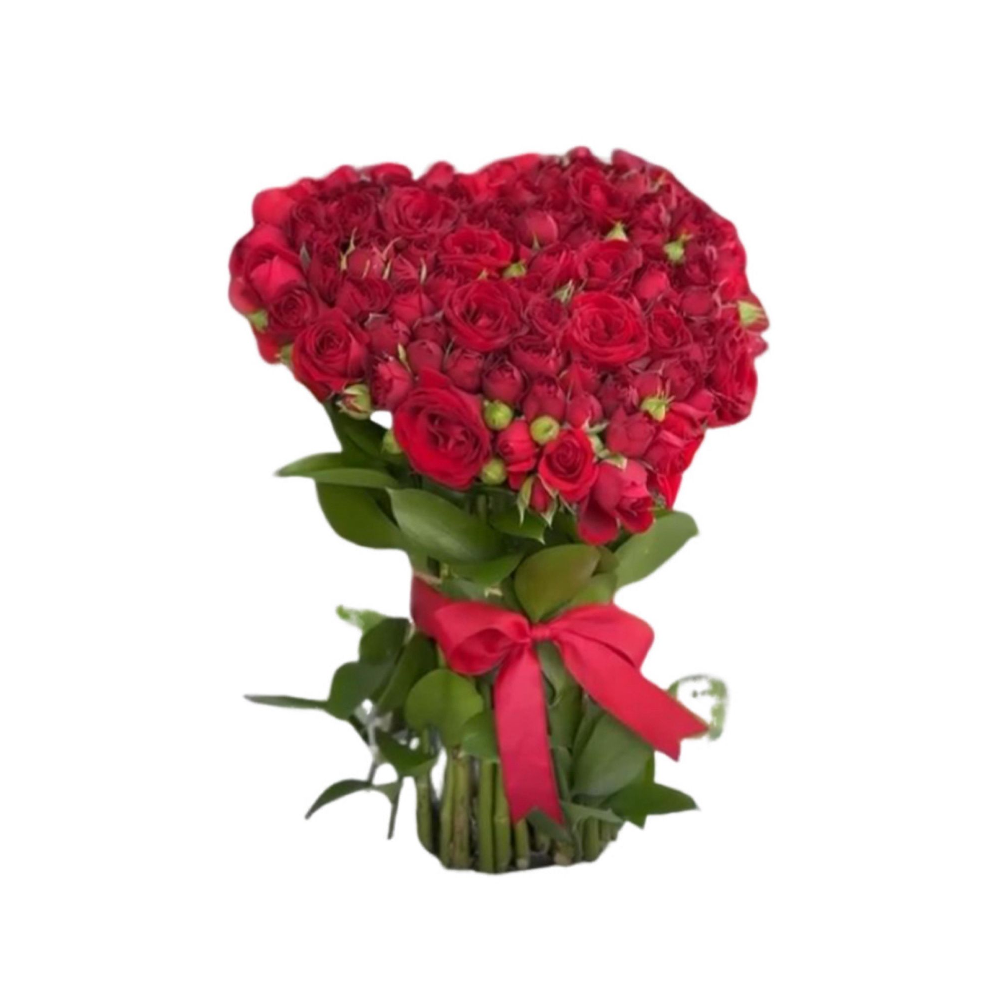 باقه علي شكل قلب من الورد الجوري الاحمر