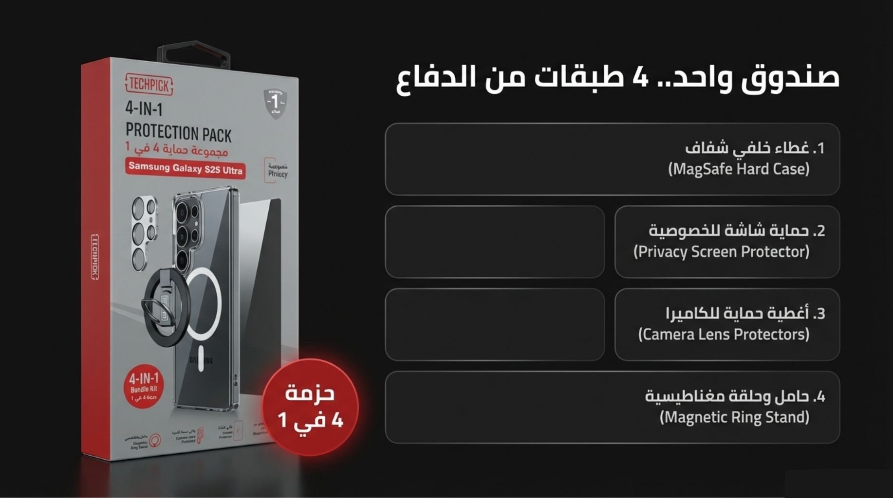 بكج حماية كامل لهاتف سامسونج جالكسي اس 25 الترا 4في1 Full protection package for Samsung Galaxy S25 Ultra 4in1.