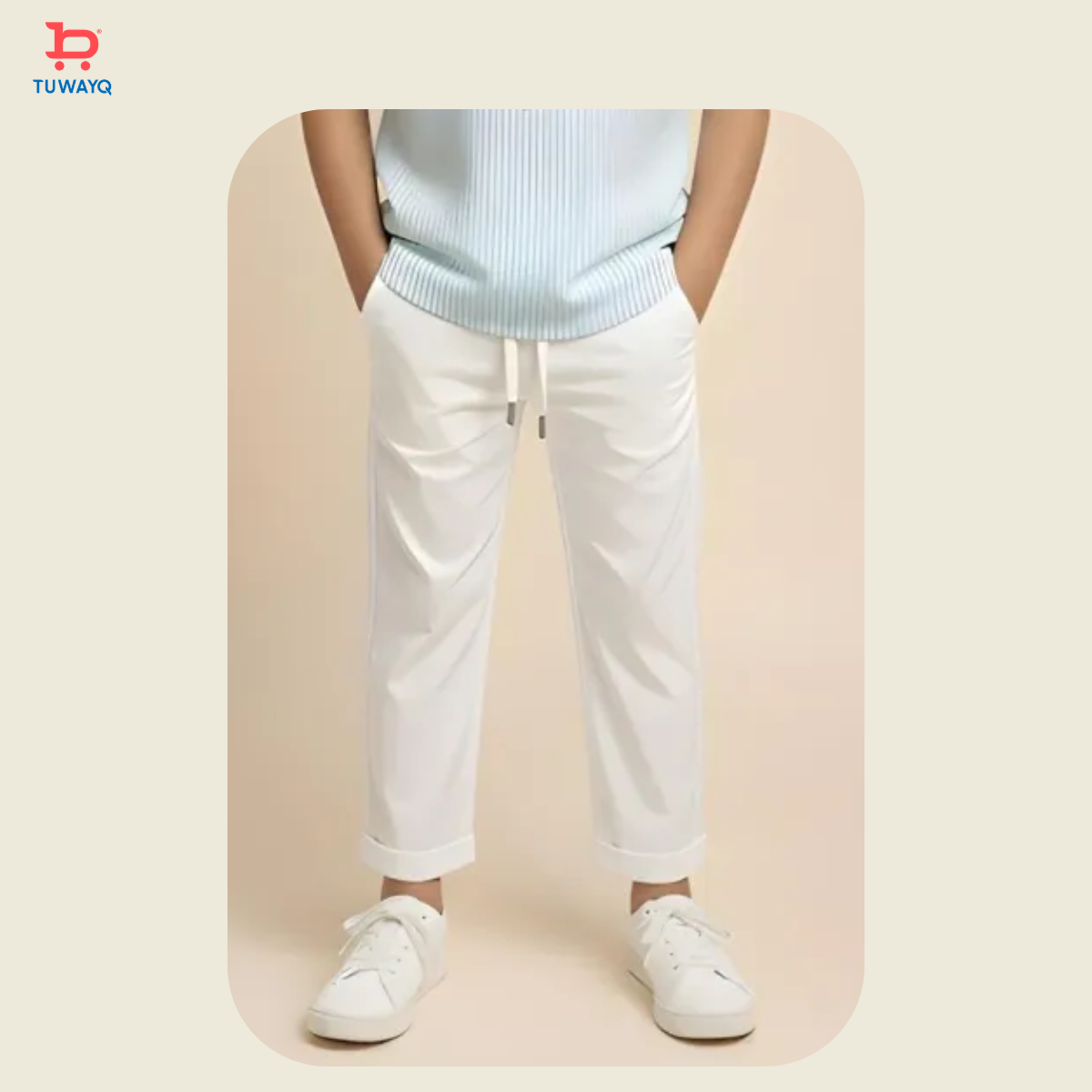 بنطلون ولادي أبيض بخيط شدّ من القطن المريح – أناقة عملية لكل مناسبة