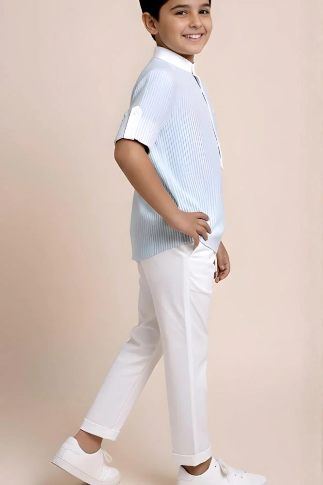 امنح صغيرك مظهرًا أنيقًا ومريحًا في آنٍ واحد مع هذا **البنطال الأبيض العصري للأولاد**، الذي يجمع بين التصميم الراقي والراحة اليومية.