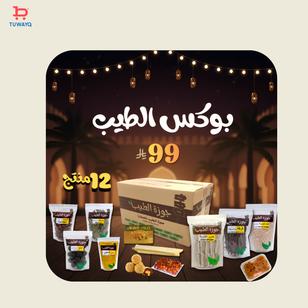 بوكس رمضاني متكامل جمعنا فيه أهم المنتجات اللي تحتاجها سفرتك في الشهر الكريم، مختارة بعناية من عطارة جوزة الطيب لتوفر عليك الوقت والسعر، وتكون جاهز لكل وصفات الشوربة، السمبوسة، العصيرات والحلويات الرمضانية.