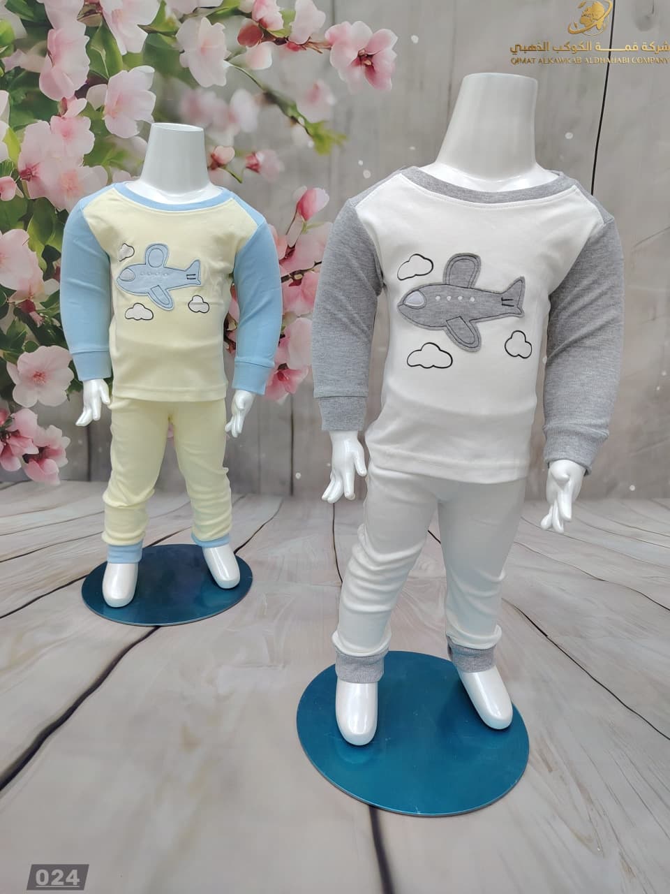 بيجامة أولادي مكوّنة من بلوزة طويلة الأكمام بطباعة طيارة مع غيوم لطيفة، وبنطال مريح بلون متناسق. خامة ناعمة ودافئة تمنح الأطفال راحة مثالية للنوم والحركة داخل المنزل.