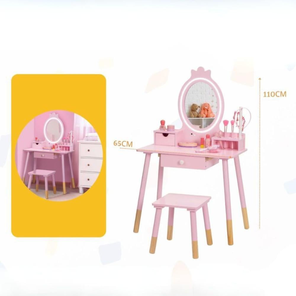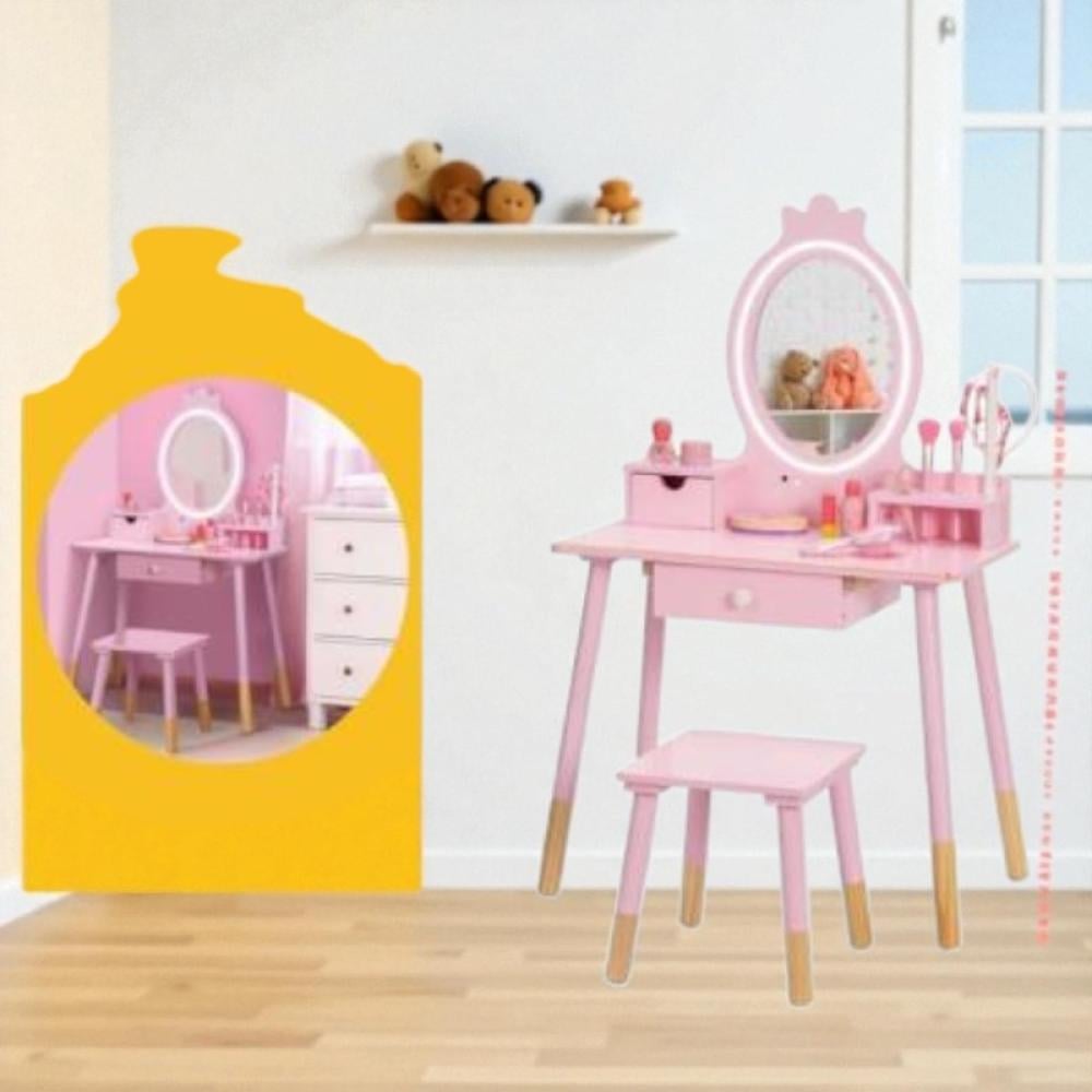 تسريحة الأميرات الوردية الخشبية مع إضاءة