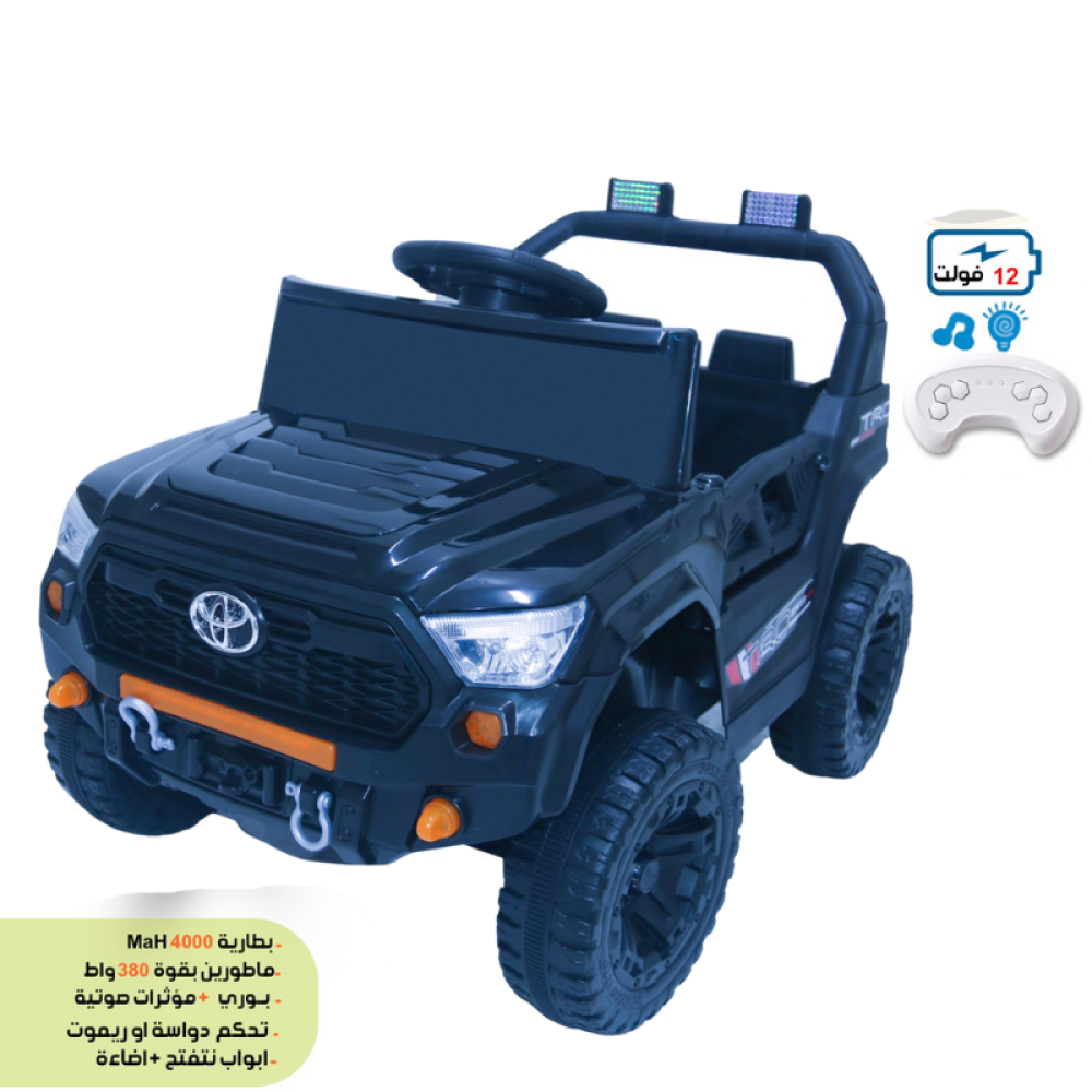 خل طفلك يعيش روح المغامرة مع سيارة تويوتا تريل ماستر 12V! تصميم شرس يشبه سيارات الدفع الرباعي الحقيقية، مع مزايا أمان وراحة وتفاصيل دقيقة تخلي كل طلعة مغامرة لا تنسى