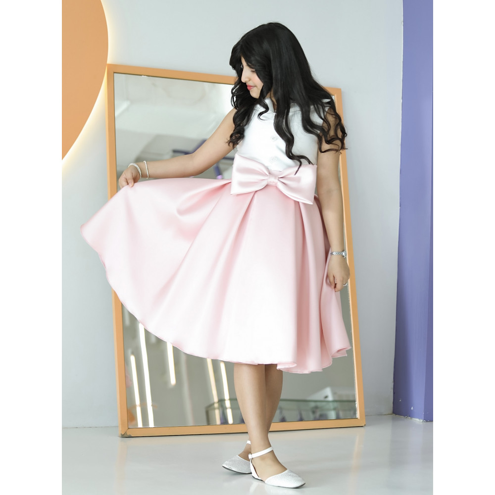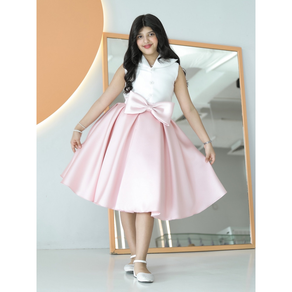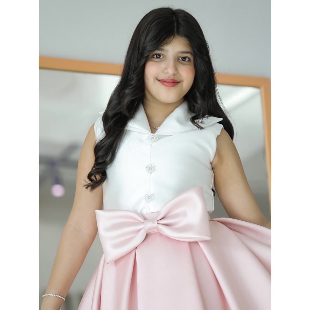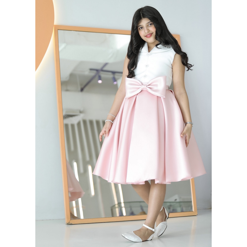 الأناقة العصرية.. إطلالة تجمع بين عالمينفي عالم الموضة، الأناقة الحقيقية هي فن الجمع بين الأضداد، وهذا التيور هو تحفة فنية تجسد هذا الفن. نقدم لكِ تصميمًا مبتكرًا يجمع بين جدية القميص الكلاسيكي ومرح التنورة المنفوشة، ليمنح أميرتك إطلالة فريدة لا تشبه أحدًا. بمزيج لوني هادئ بين الأبيض النقي والأزرق السماوي، وقصة تزينها فيونكة ضخمة تخطف الأنظار، صُمم هذا الفستان ليكون بيانًا عن الذوق الرفيع والشخصية الواثقة. إنه ليس مجرد فستان، بل هو قطعة أيقونية مصممة للفتاة العصرية التي تحب أن تترك بصمتها الخاصة. لماذا هذا الفستان هو قطعة الموسم الفريدة؟لأنه يجمع بين التصميم المبتكر، الجودة الفاخرة، والتفاصيل التي لا تُنسى.تصميم مبتكر بمظهر قطعتين: يتميز الفستان بتصميم يوحي بأنه قطعتان، مع صدرية (توب) بيضاء أنيقة بلا أكمام وياقة قميص رسمية، وتنورة زرقاء منفصلة.فيونكة تخطف الأنظار: تزين الخصر فيونكة كبيرة باللون اللحمي، تضفي لمسة من الفخامة والأنوثة وتجعل الإطلالة متكاملة وساحرة.قماش ساتان راقٍ: صُنع هذا الفستان البناتي من الساتان عالي الجودة، الذي يمنح التنورة قصة منفوشة وثابتة، مع لمعان راقٍ يضيف لمسة من الفخامة.مثالي لكل المناسبات الأنيقة: سواء كنتِ تبحثين عن فستان بناتي للعيد بتصميم عصري أو لإطلالة مميزة في حفل زفاف أو مناسبة خاصة، هذا التصميم هو خيارك الأمثل. جودة تلمسينها في كل خيط من 1 - 18 سنة ✨ اطلبيه الآن ودعي أميرتك تتألق بسحر الطبيعة الخلاب! ✨