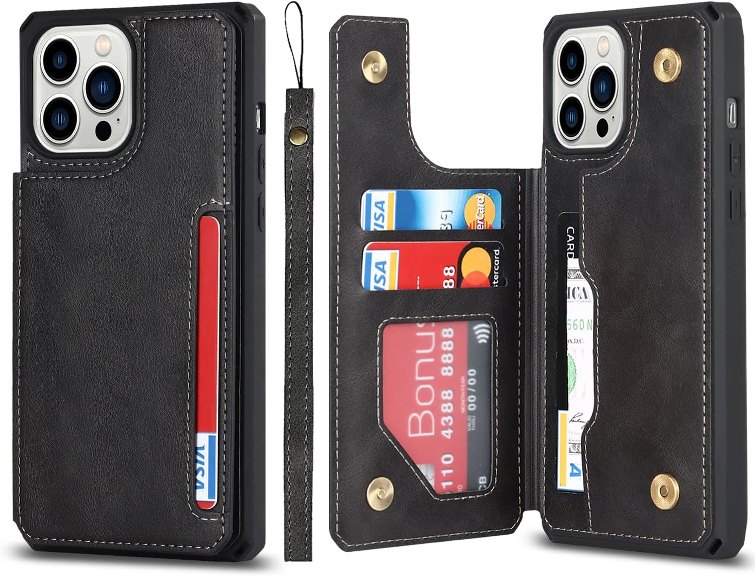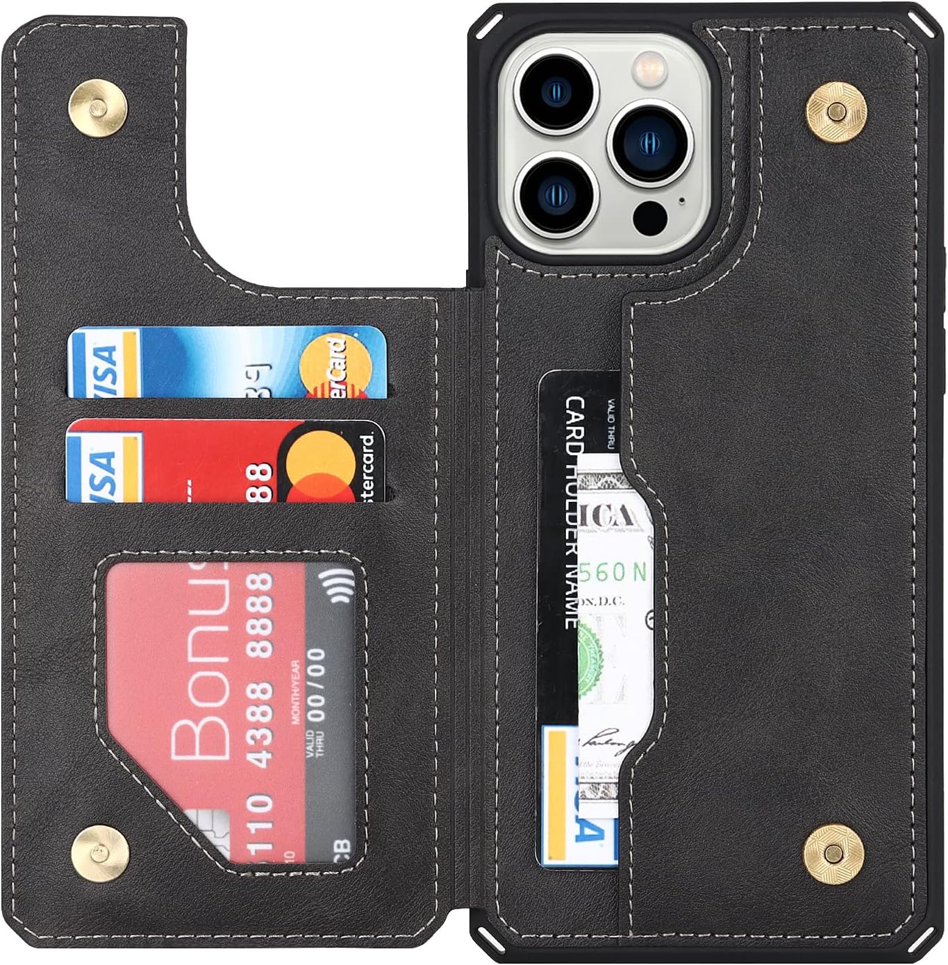 جراب كفر غطاء جلدي للهاتف ايفون 14 برو ماكس مع حامل للبطاقات Back cover with card holder for iPhone 14 Pro Max