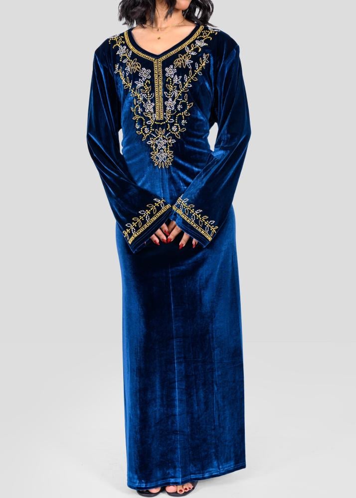 جلابية مخمل نسائي بتطريز امامي
