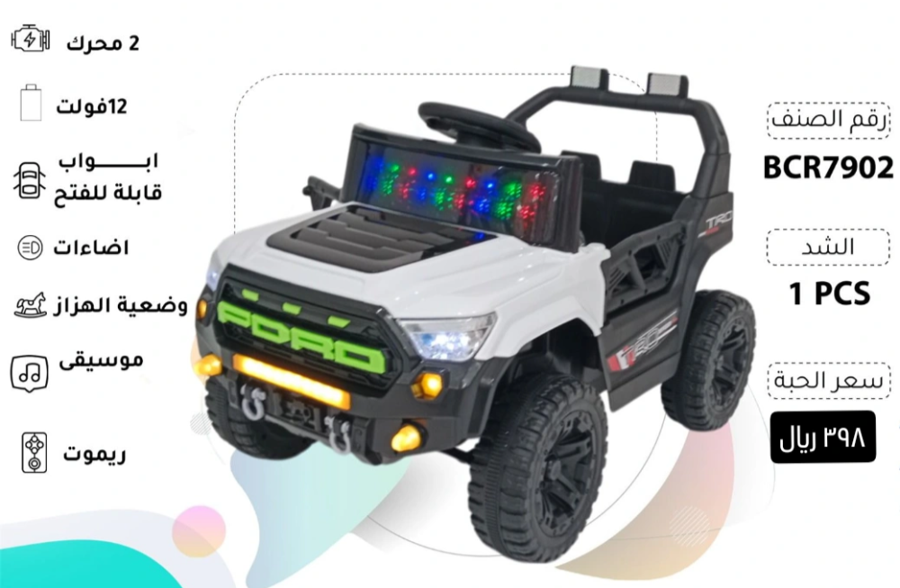 مواصفات سيارة جيب PORD أسود ماطورين 12 فولت: