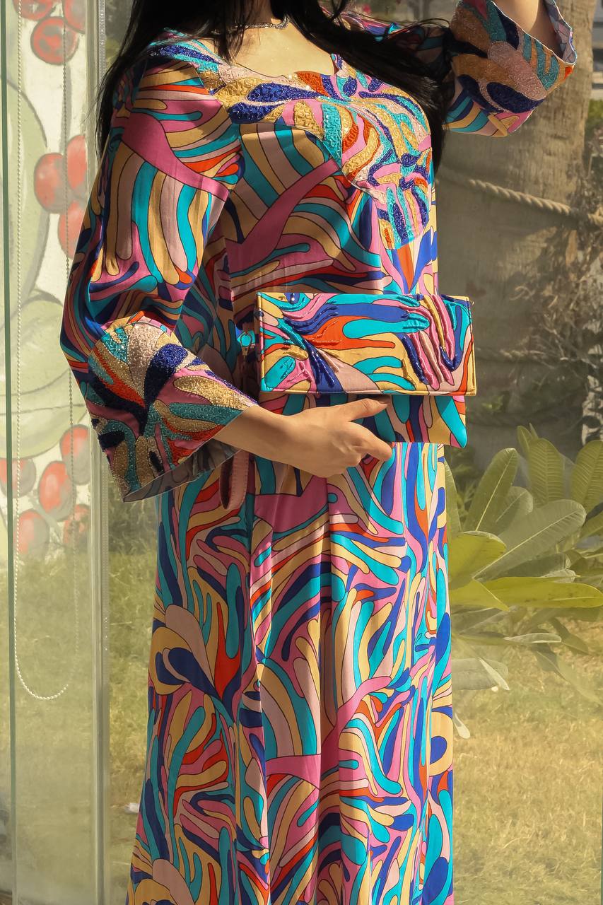 حقيبة باوتش مطرزة متناسقة مع الجلابية