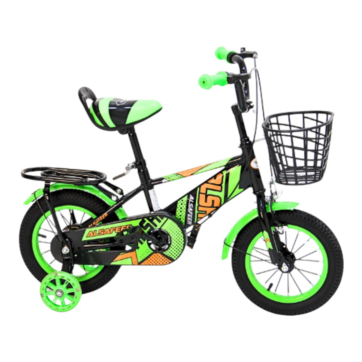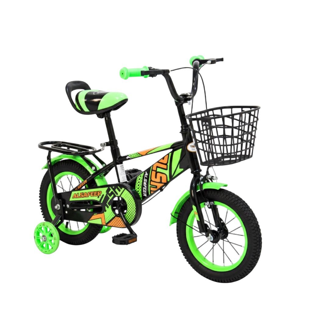 دراجة أطفال اخضر مقاس 12إنش– تصميم رياضي بجنوط أسيام ، رفارف أمامية وخلفية، فرامل يدوية، سلة امامية ومقعد خلفي