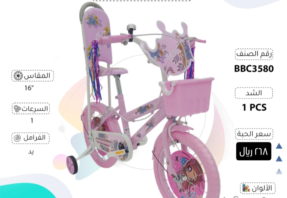 لا تفوتي فرصة إهداء طفلتك هذه الدراجة الرائعة التي تجمع بين الأمان والمتعة. اجعليها تستمتع بأوقات لا تُنسى مع صديقاتها ودمياتها. اطلب الآن واهدي صديقك أو معارفك هدية تليق بهم وبك!