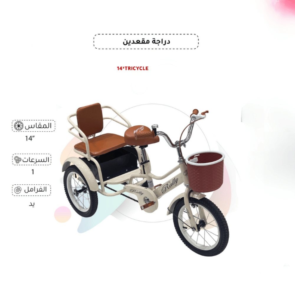 دراجة أطفال ثلاثية مقاس 14 بمقعدين