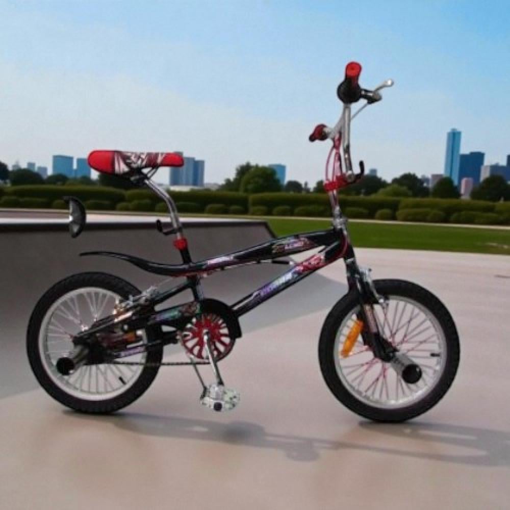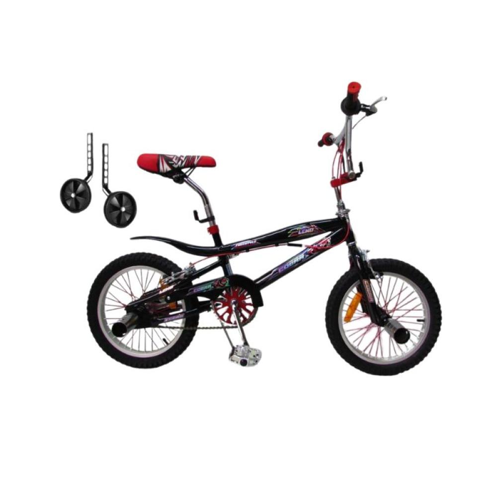 • انطلاقة البطل: هذي هي دراجة المغامرين الصغار! تصميمها الرياضي رهيب وجذاب، وتفاصيلها باللونين الأسود والأحمر تخليها نجمة الألعاب في الحي!