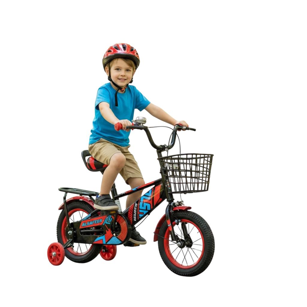 دراجة أطفال مقاس 12إنش– تصميم رياضي بجنوط أسيام ، رفارف أمامية وخلفية، فرامل يدوية، سلة امامية ومقعد خلفي
