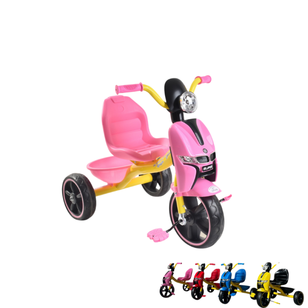 خلي طفلك يستمتع بأمان ومرح مع الدراجة الثلاثية الأنيقة! تصميمها المريح والمستقر بثلاث عجلات يخليها مثالية للأطفال الصغار للتعلم واللعب. مزودة بمقعد مريح، ودواسات أمامية سهلة الاستخدام، وإطارات قوية تناسب الاستخدام داخل وخارج المنزل .