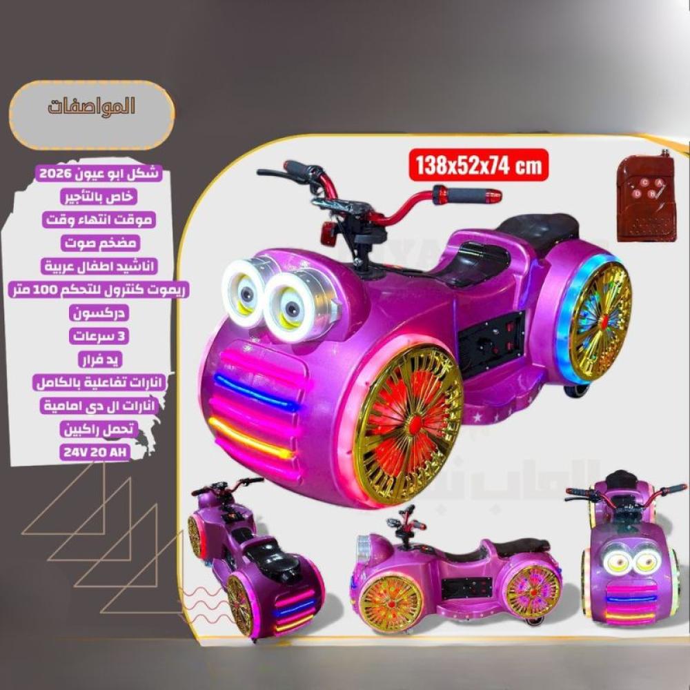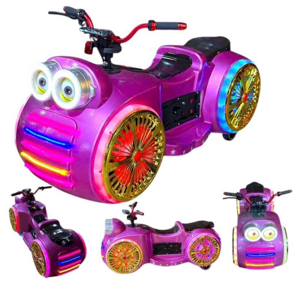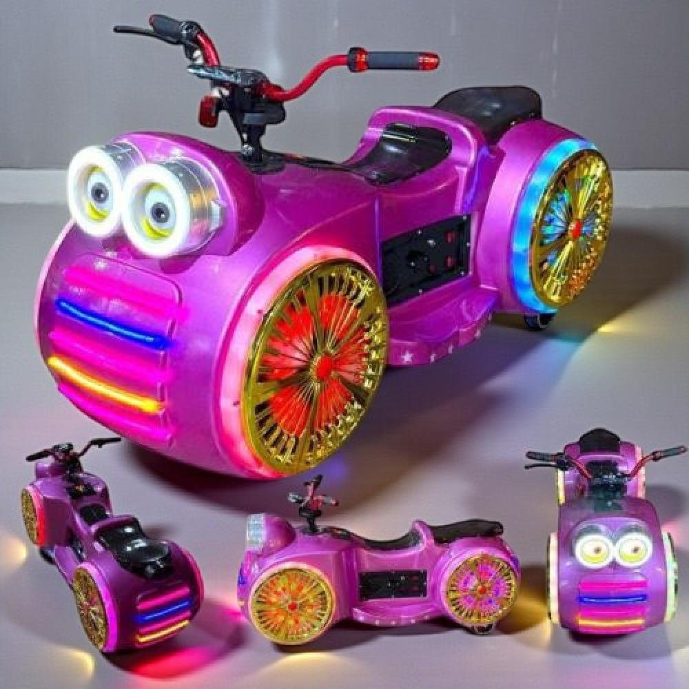 • دراجة كهربائية للأطفال بتصميم مبتكر على شكل شخصية كرتونية مع عجلات ملونة مميزة.