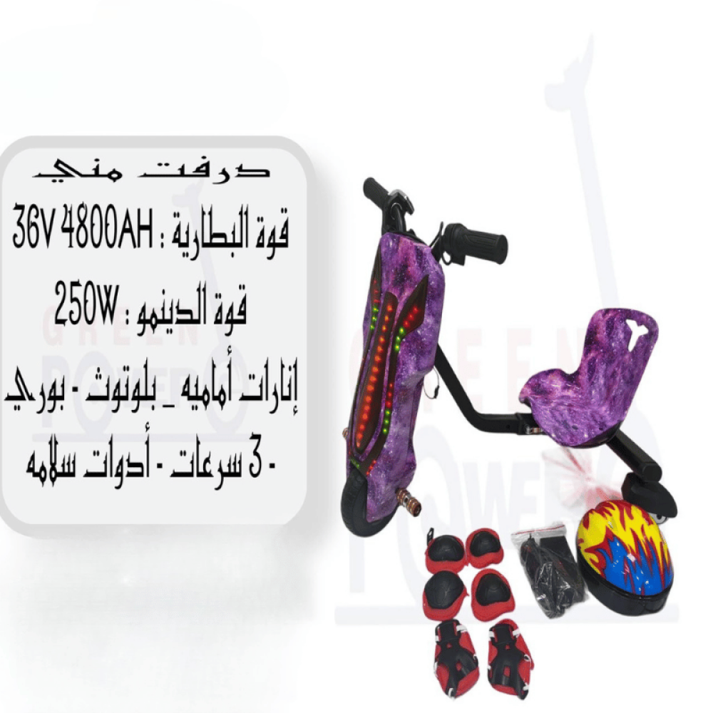 احصل على تجربة ممتعة ومثيرة مع دراجة منهي الكهربائية 250 واط! هذه الدراجة مثالية للأطفال أو المراهقين، حيث تأتي مع مقعد مريح وإضاءة ملونة لإضفاء لمسة من الإثارة على كل مغامرة. مع 3 سرعات قابلة للتعديل وأضواء مميزة، هذه الدراجة تعد الخيار الأمثل للترفيه والتنقل القصير.