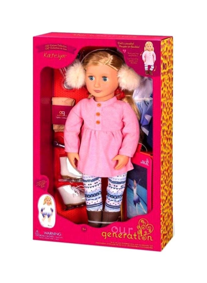 دمية تزلج على الجليد بطول 18 بوصة وقابلة للتحريك.
