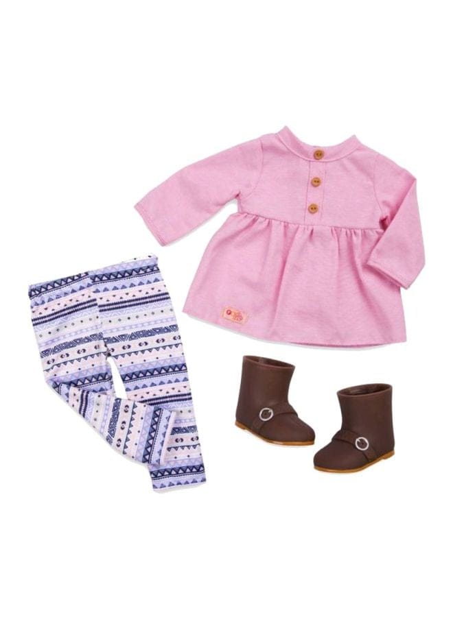 • تأتي الدمية مع زي تزلج على الجليد وزي شتوي غير رسمي.