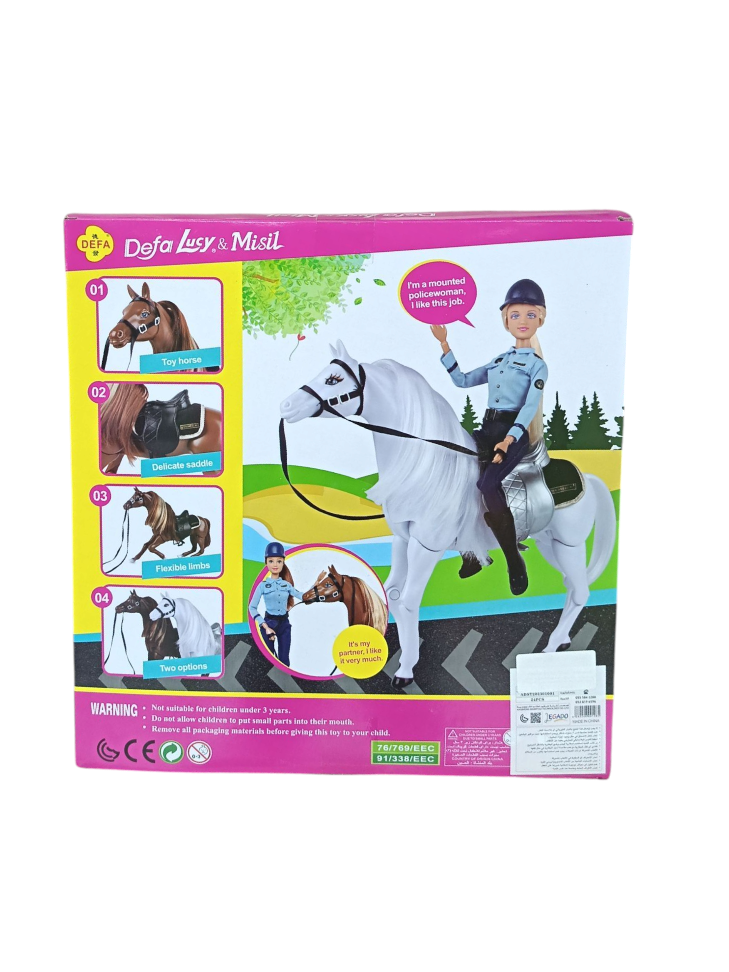 دمية "ديفا لوسي" الشرطية الراكبة مع حصان هي لعبة قابلة للجمع ومناسبة للعب التخيلي