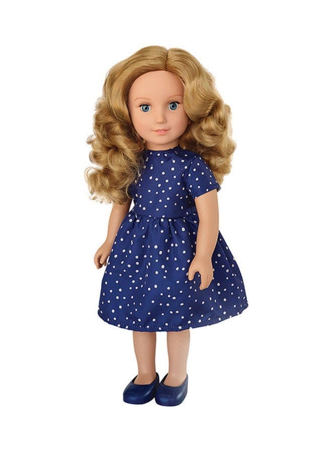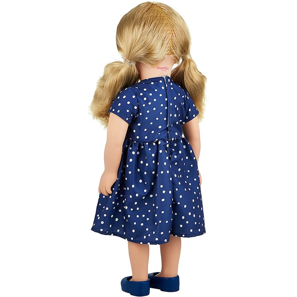 المظهر: تتميز بشعر أشقر وفستان أزرق منقط باللون الأبيض، يعكس أناقة ورقيًا.