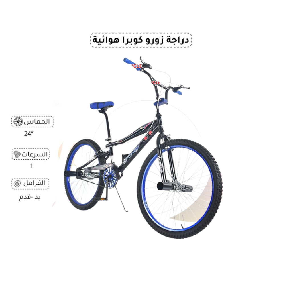 دراجة زورو كوبرا الهوائية هي خيار الشباب اللي يحبون السرعة والأناقة في نفس الوقت . تصميمها جريء ورياضي، ومقاسها 24 إنش مناسب للأعمار الكبيرة أو المراهقين. فيها فرامل يد وقدم، وسرعة وحدة تعطيك تحكم مريح وسهل. خذها للتمارين أو للمشاوير، وعيش أجواء الحماس بكل طلعة!
