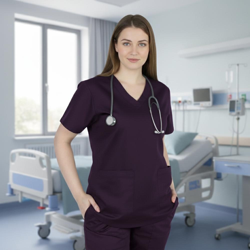 زي طبي نسائي لون بنفسجي غامق