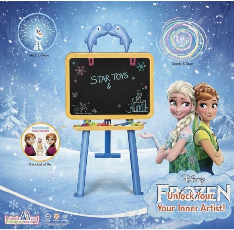 لوح رسم مزدوج الجوانب، يظهر جانب منه كسبورة سوداء يمكن الكتابة عليها بالطباشير، بينما الجانب الآخر هو لوح أبيض يمكن الكتابة عليه بأقلام التحديد أو استخدامه مع المغناطيس.    تتميز لوحة الرسم برسومات لشخصيات ديزني الشهيرة من فيلم فروزن