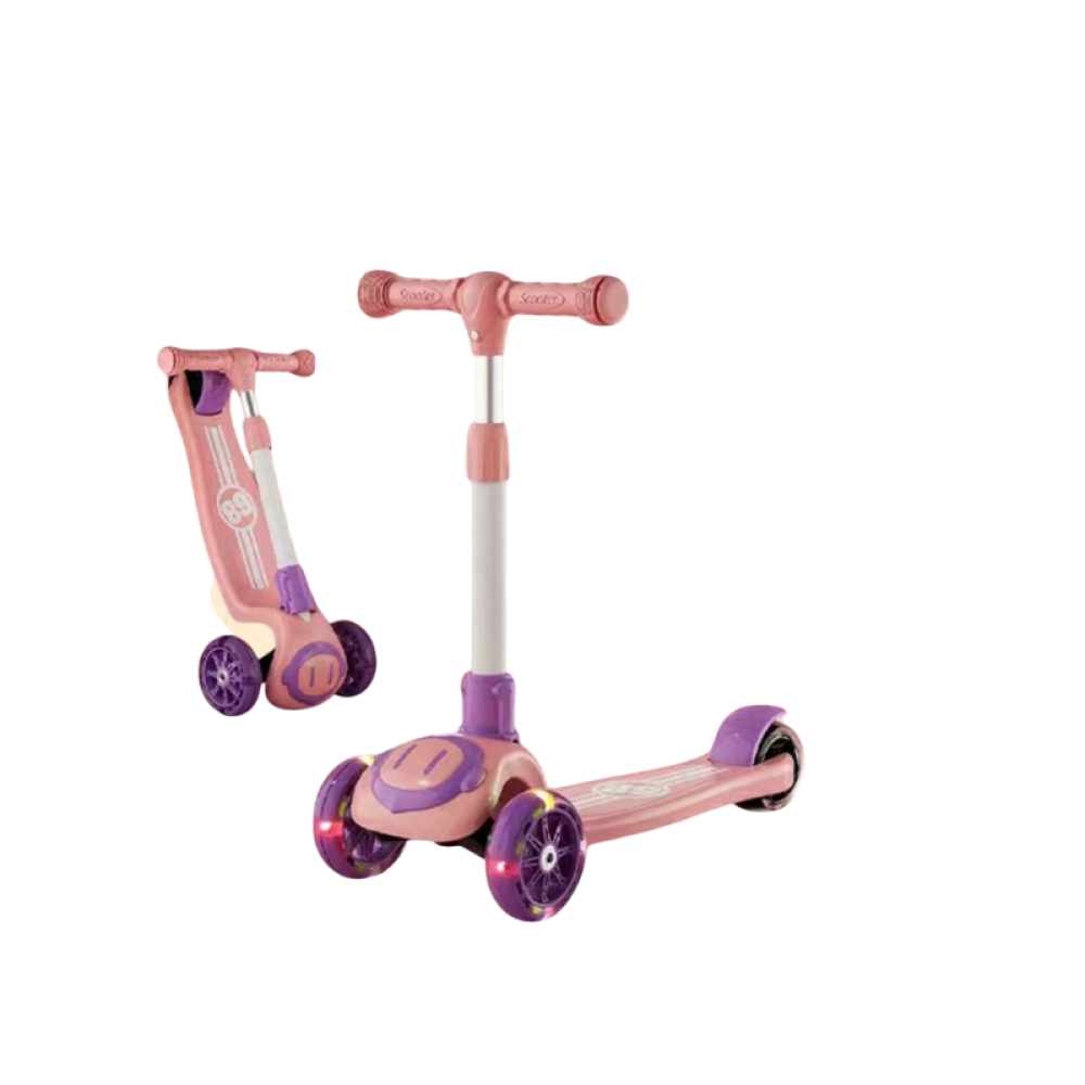 متعة لا تنتهي مع هالسكوتر الوردي المضيء ، تصميمه مناسب للصغار ويجمع بين المرح والأمان.