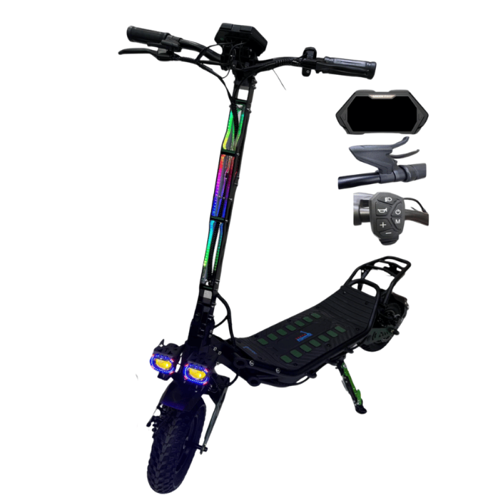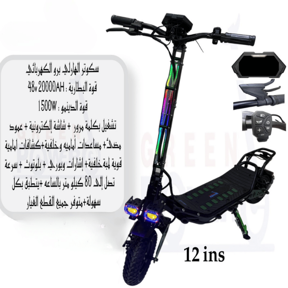 استمتع بتجربة قيادة قوية وأنيقة مع سكوتر الهلاند برو الكهربائي 1500 واط! سكوتر مميز بتصميم عصري يضم محرك قوي 1500 واط مع إضاءة قابلة للتخصيص. مع سرعة تصل إلى 80 كم/س، هذا السكوتر مثالي لمحبي السرعة والمغامرة. يمتاز السكوتر أيضًا بشاشة إلكترونية لعرض السرعة والطاقة المتبقية، مما يجعله خيارك الأمثل للقيادة الممتعة والآمنة.