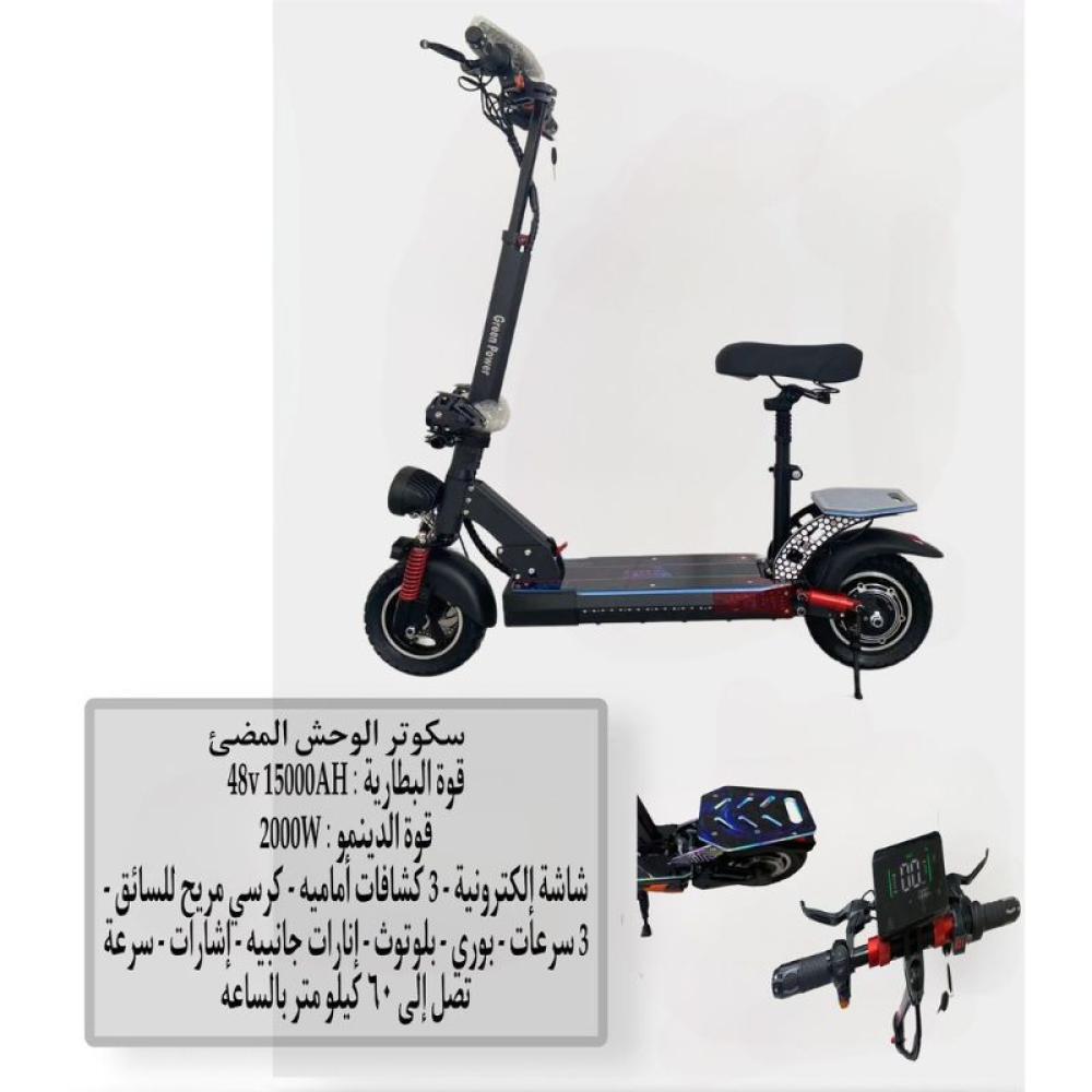 • سكوتر كهربائي قوي 2000W مزود ببطارية 48V 15000AH، حيث يضمن لك أداءً قويًا وسريعًا طوال الوقت.