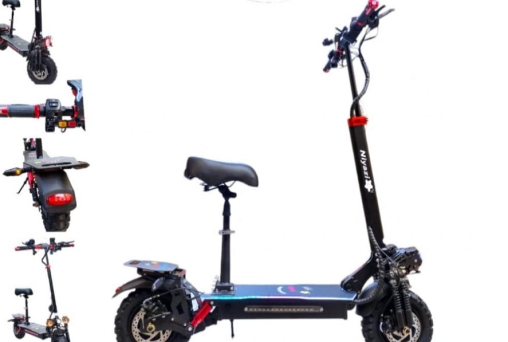 1- سكوتر كهربائي مصنوع من سبائك الألمونيوم 48 فولت وبقوة محركين جبارة اجمالي 4000 واط منها امامي 2000واط وخلفي 2000 واط