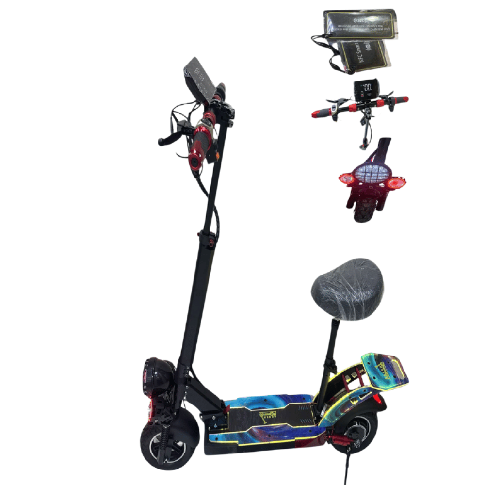 اكتشف قوة القيادة مع سكوتر الوحش M7 الكهربائي 800 واط! السكوتر المثالي لمحبي السرعة والأداء القوي، يأتي مع محرك 800 واط وبطارية سعتها 48V 15000mAh. يتميز السكوتر بشاشة إلكترونية لعرض السرعة والطاقة المتبقية، بالإضافة إلى إضاءة أمامية وخلفية لزيادة الأمان أثناء القيادة في الليل. مع 3 سرعات قابلة للتعديل، هذا السكوتر يوفر لك رحلة ممتعة ومريحة على أي نوع من الأسطح.