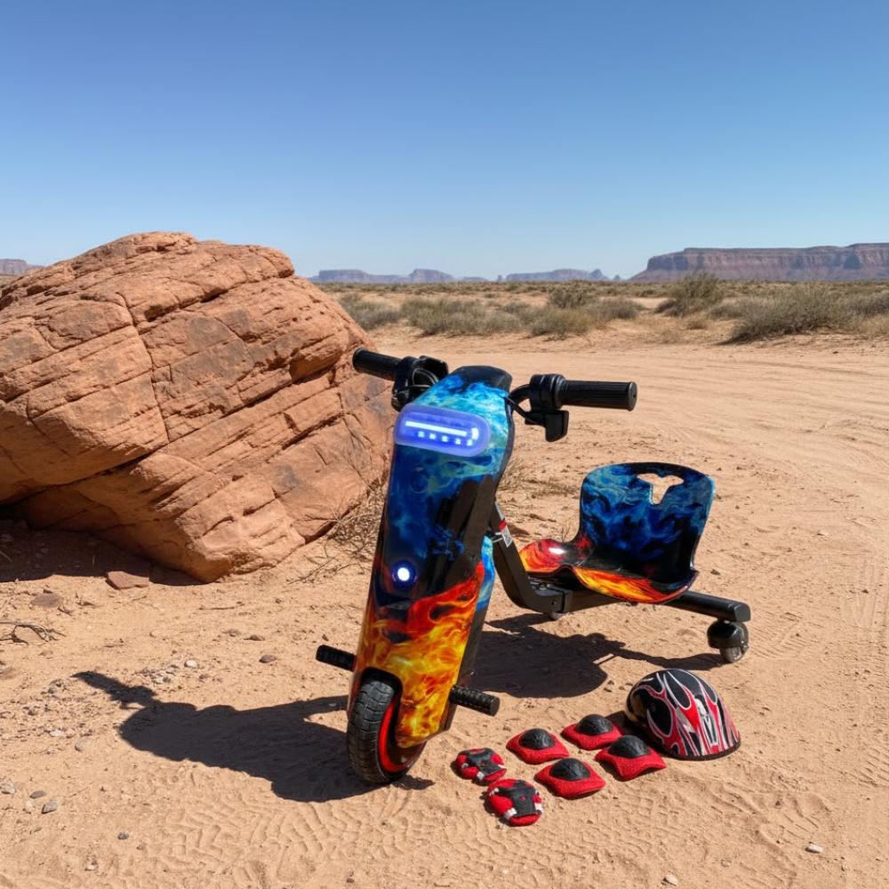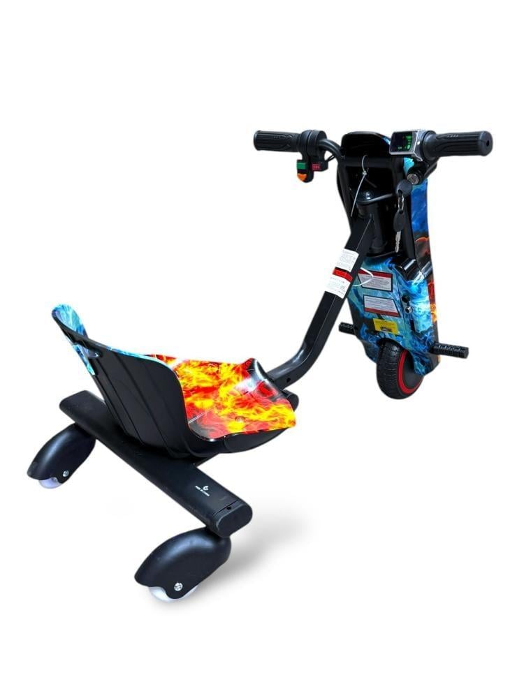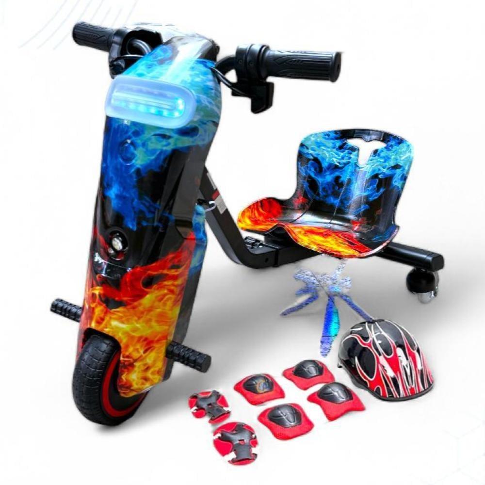مميزات سكوتر درفت صغير بطبعات أزرق ناري 36 فولت بثلاث عجلات: