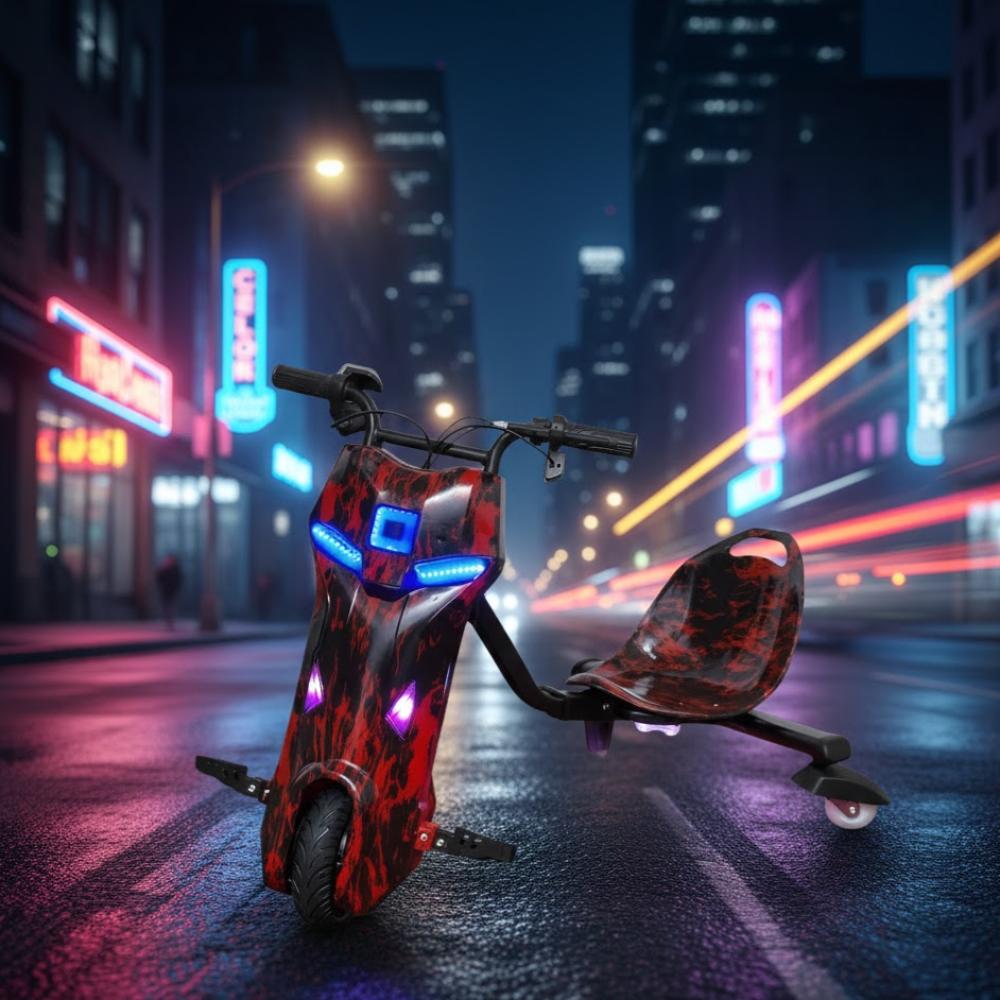 سكوتر درفت صغير بطبعات فضائية حمراء 36 فولت بثلاث عجلات