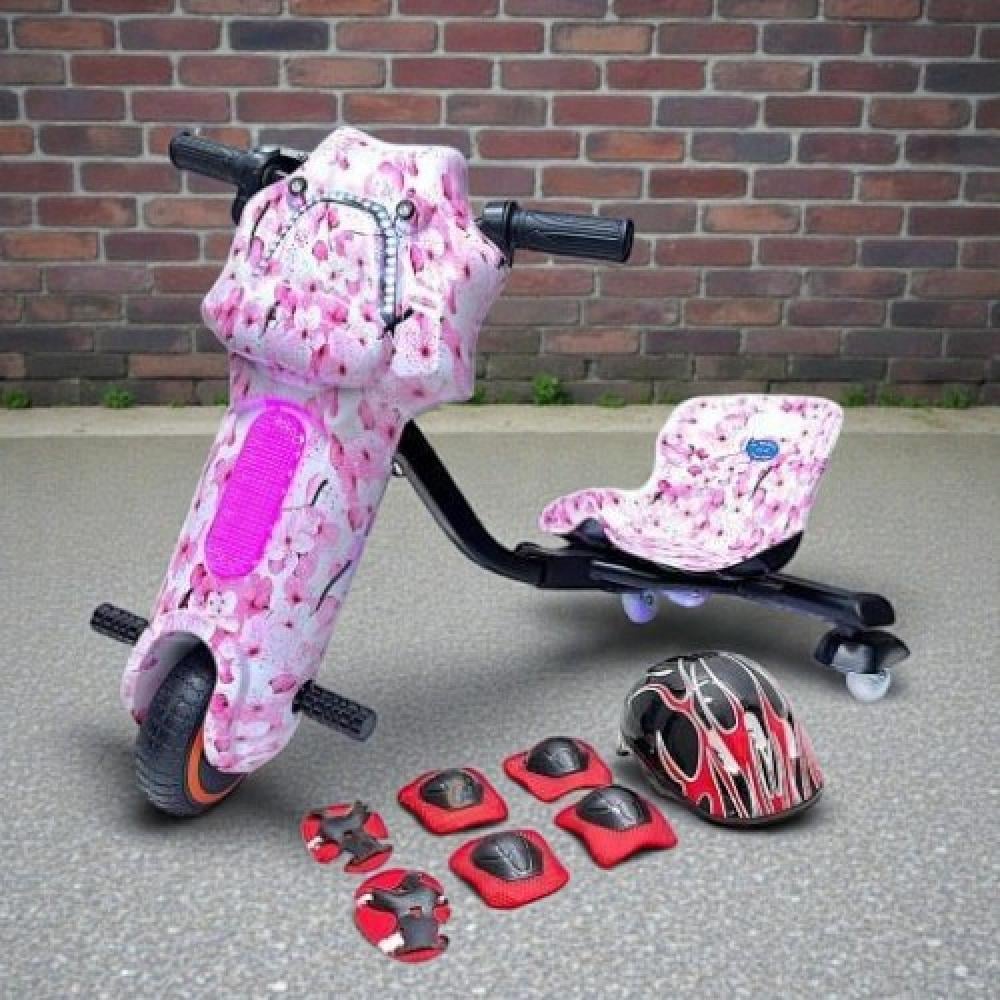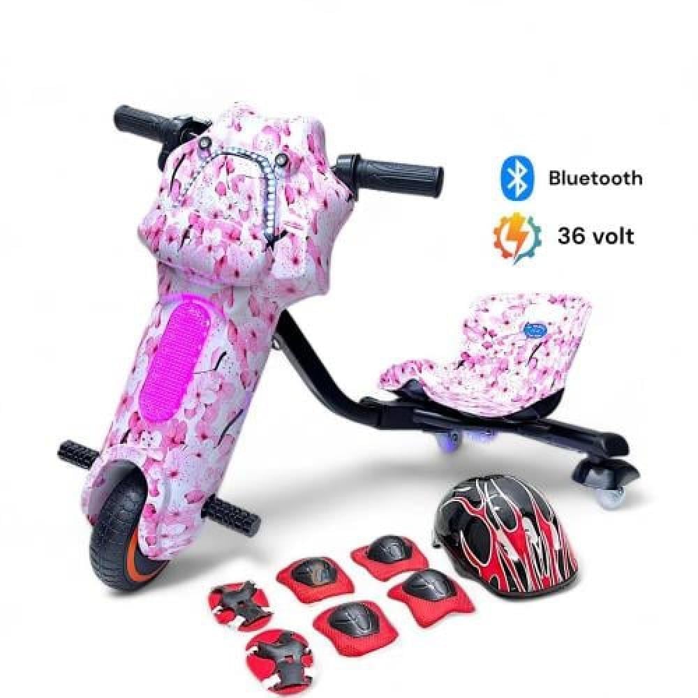 سكوتر درفت صغير مميز بطبعات وردي 36 فولت بثلاث عجلات