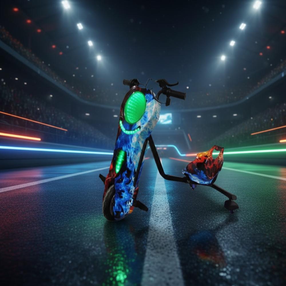 عيش أجواء الإثارة مع سكوتر الدرفت سمايلي بتصميم ناري وألوان ثلاثية الأبعاد تخطف الأنظار . مجهز بإضاءات LED عصرية تعطي لمسة جمالية وحماسية أثناء اللعب، ومناسب لكل طفل يحب السرعة والمرح .
