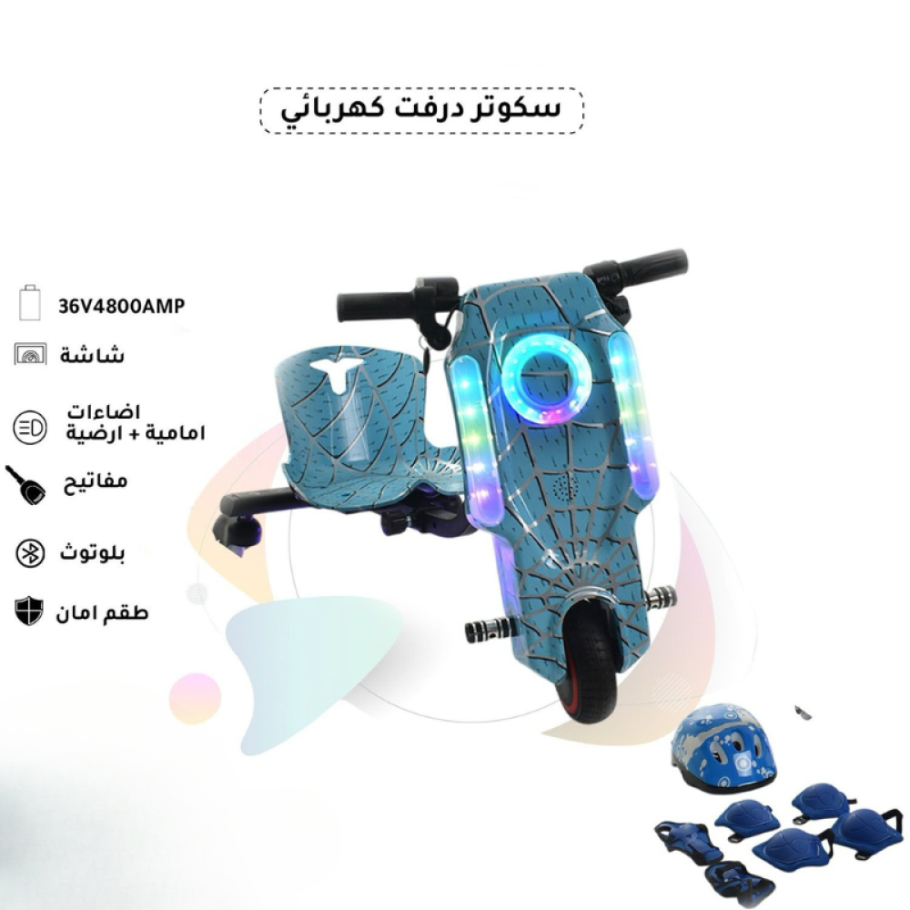 استعدوا للمتعة والإثارة مع سكوتر الدرفت الكهربائي للأطفال! يجمع بين الأمان والترفيه بتصميم جذاب مستوحى من عالم الأبطال . مثالي لتمارين التوازن وتعزيز مهارات القيادة لدى الصغار .