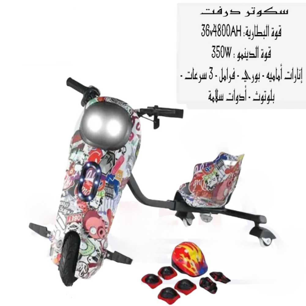 خلك جاهز للانطلاق مع سكوتر درفت 350W، اللي يجمع بين القوة والمظهر العصري! سكوتر مع محرك 350W وبطارية 36V800AH، يقدم لك كل اللي تحتاجه من سرعة وقوة وأمان. مع إضاءة LED مميزة وواقيات لحمايتك، بتكون مستعد لمغامرة حماسية بأمان.
