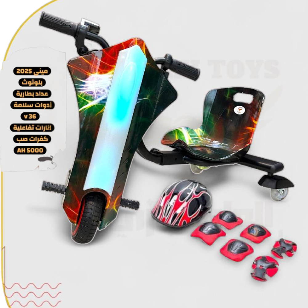 عيش المتعة مع سكوتر الدرفت الجديد بتصميم عصري ولمسات ضوئية تفاعلية تبهر الأطفال في كل جولة .