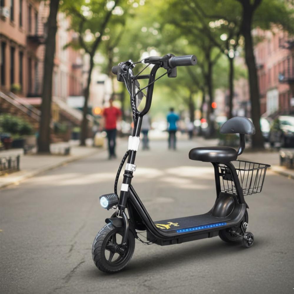 • يا هلا بالسرعة والدلع! سكوتر كهربائي ميني مع مقعد مريح وسلة أمامية يخلي صغيرك يلف الشارع زي البرق ويحمل أغراضه بكل فشخرة!