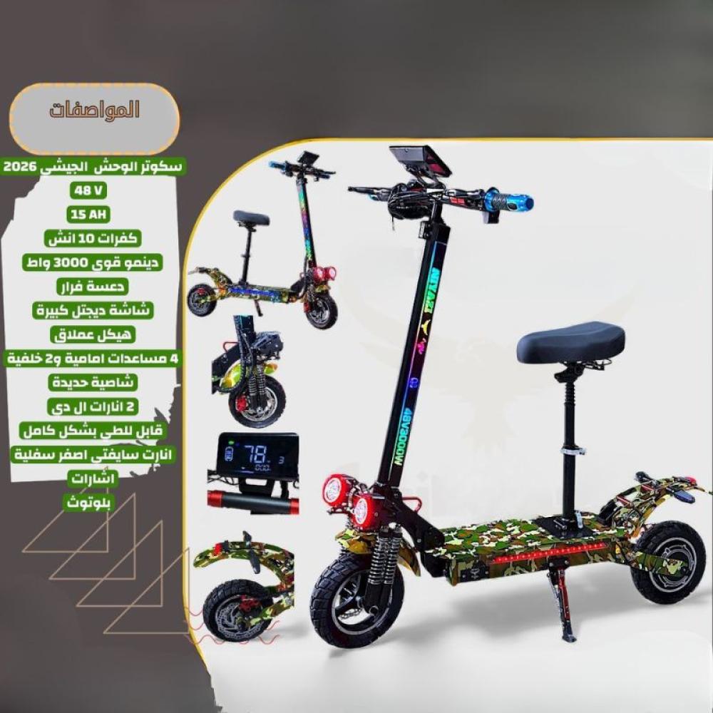 • سكوتر كهربائي قوي بتصميم مميز بألوان كاموفلاج.