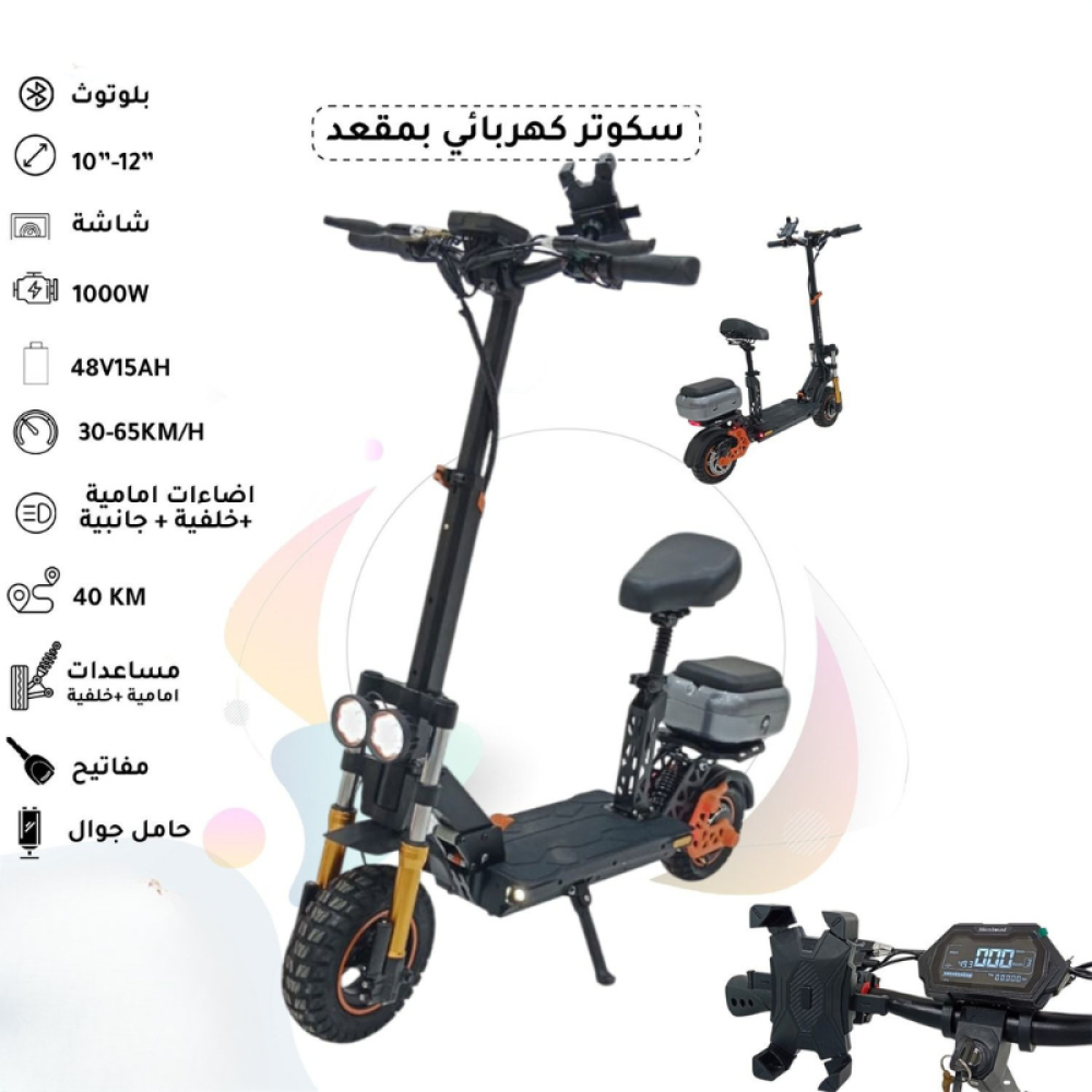 سكوتر كهربائي بمقعد 1000 واط ببطارية 48 فولت ولمسافة 40 كم
