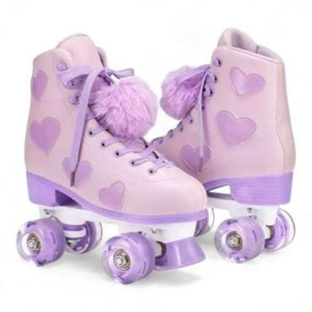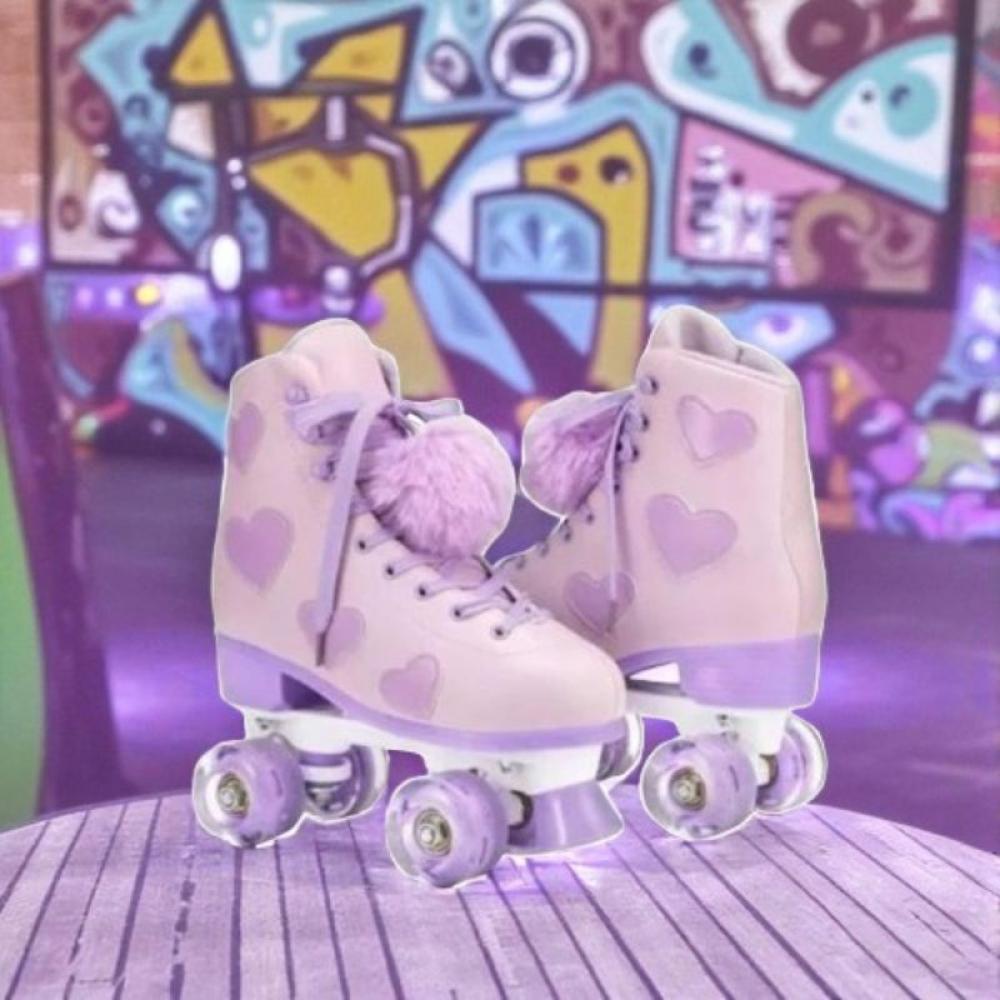 • جمال ودلع يسر الناظرين! هذا مو مجرد سكيت، هذا قطعة فنية كلها رقة وأنوثة. بلونه الوردي الباستيلي الهادي مع لمسة البنفسجي الفاتح وتطريزات القلوب الحلوة، يخليك الأميرة وين ما رحتي!