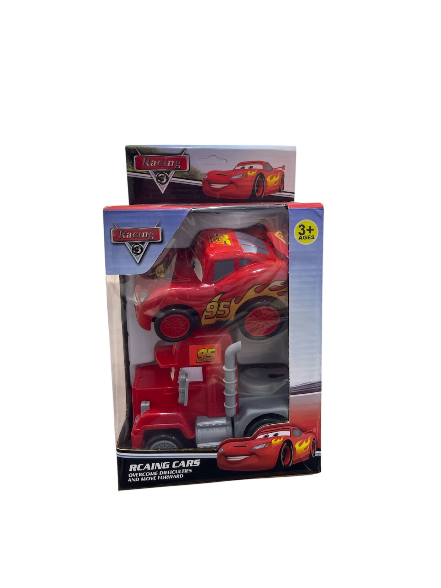 المحتوى: تحتوي المجموعة على شاحنة حمراء كبيرة وسيارة سباق حمراء صغيرة، كلاهما يحملان الرقم "95" وشعارات اللهب المميزة لـ "لايتنينغ ماكوين"