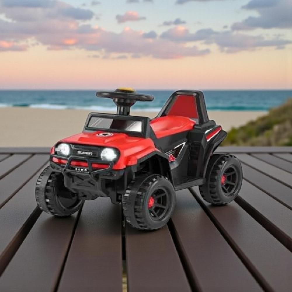 • تصميم عصري ومميز: سيارة كهربائية مصممة للأطفال بشكل جذاب وألوان حيوية مثل الأحمر والأزرق، لتوفير تجربة ممتعة ومثيرة.