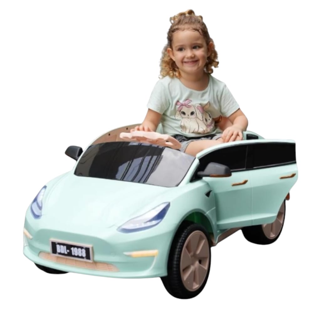 سيارة اطفال تسلا 12 فولت بعدة الوان - فستقي الهادئ