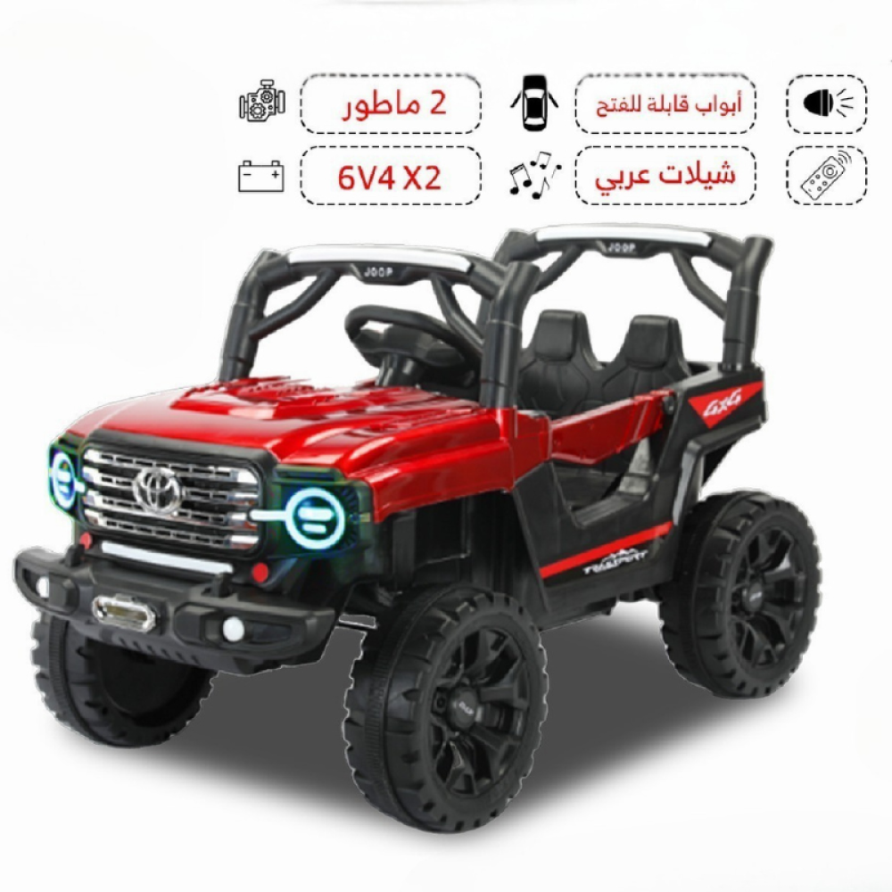 دع طفلك يعيش تجربة قيادة مليئة بالمرح والمغامرة مع سيارة الدفع الرباعي الكهربائية ذات التصميم الجذاب واللون الأحمر المميز . تأتي مزودة بمحركين قويين، بطاريتين 6 فولت، وأبواب قابلة للفتح، بالإضافة إلى شيلات عربية تزيد من متعة القيادة .
